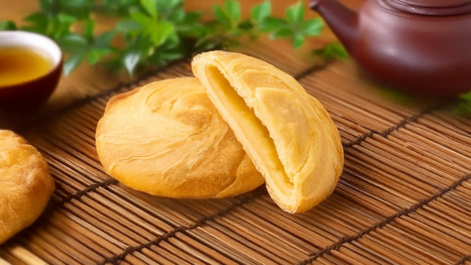 作為台中的名物,太陽餅是寶泉的鎮店之寶。其精髓在於那多達百層的酥皮。師傅以麵粉反覆摺疊、桿壓,過程中的力道與節奏,決定了餅皮最終的命運——過重則死實,過輕則鬆散。成功的太陽餅皮,輕如羽毛,觸之即碎,入口後不需咀嚼,便在舌尖化開,如同冬日暖陽般溫柔。內餡是以麥芽糖精心熬煮的糖心,甜而不膩,帶著淡淡的奶油香氣。當酥皮與糖心在口中交融,創造出的是一種極致的和諧與滿足,這正是寶泉日式講究的完美體現。